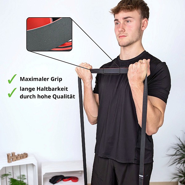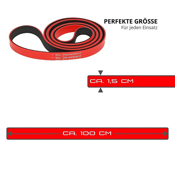 Same as the original Deuserband but with 40% reduced traction. Optimal training equipment to build muscle after injury, illness, etc. Endless rubber band about 15 mm wide, 100 cm long, with a handy plastic handles.