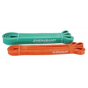 TheraBand High Resistance Band, set of 2, light, 104 cm long, band thickness 4 mm, red band, light / 7 kg, green band, medium / 11 kg