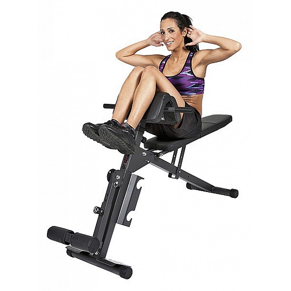 With this device you can implement their own training program at home and strengthen all major upper body muscles. The all-round bank for upper body workout. Flexible and varied by more height adjustable flat bench and curl station. Exercise possibilities: Back-straightener (hyperextension) abdominal exerciser in various angles flat and negative bench press chest training arm curl triceps-arm rowing shoulder training (lateral raises) foldable to save space, folding. Dimensions: (L) 118 cm x (B) 68 cm x (H) 33 cm , Dimensions: (L) x 152 cm (B) x 68 cm (H) 82 cm. Dumbbell is not included! Max. User weight: 150 kg, color: silver / brown.