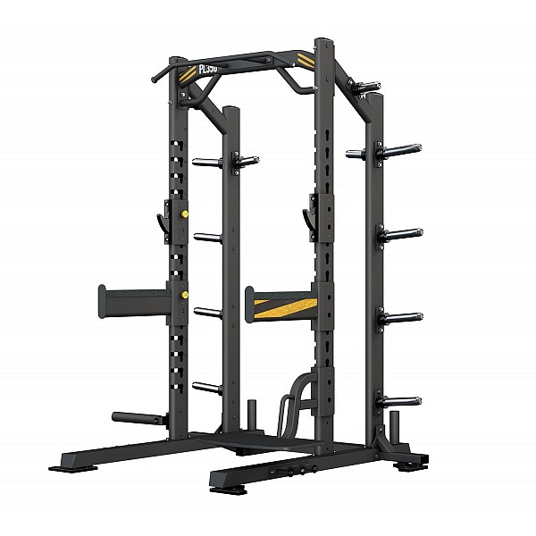 The Powerrack Full Rack combines safety and versatility. With 15 height levels, it is ideally suited for barbell training. An integrated pull-up bar and dip attachment complete the setup. 12 plate storage racks provide ample storage space. Perfectly designed for demanding training. Delivery is ex works, without assembly. A forklift is required for unloading.