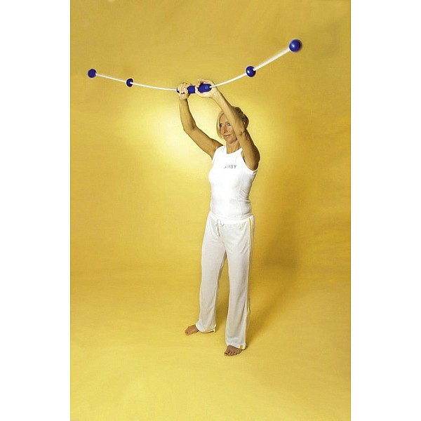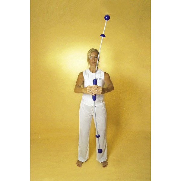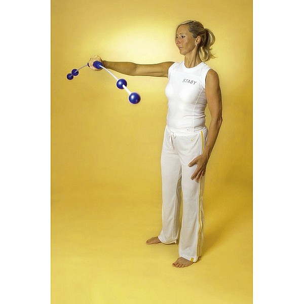 With interchangeable end pieces. Standard medium with balls intensity. Staff silver, blue balls. Staby caters for all fitness levels and ages effective training options. With training manual and DVD.