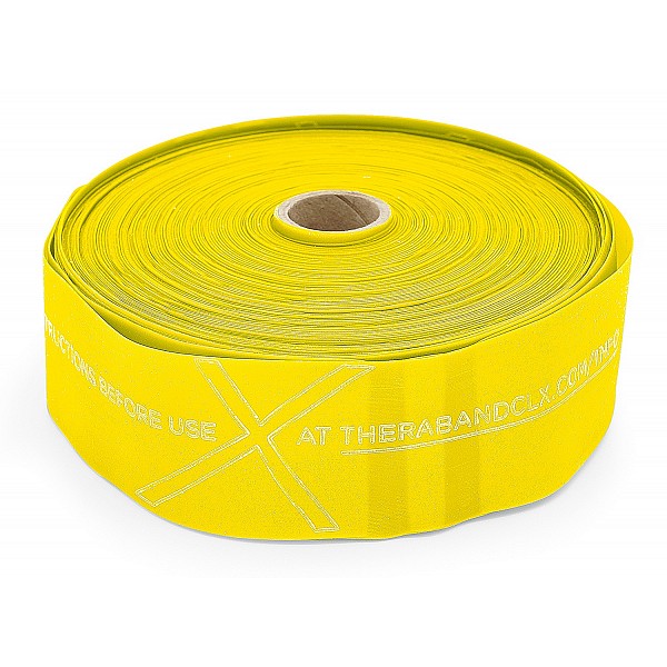 The new latex-free CLX band of Thera-Band consists of rows of loops (patented Easy Grip loop system) that allow easy gripping and securing the bands. This results in individual types of grips and novel training possibilities for a simple, versatile and progressive resistance training without expensive windings or node of the tape. The CLX band performs the functions of four exercise machines: exercise bands, loops, tubing with handles and door anchor. It is suitable for all training situations of physical therapy to athletic training and meets with its color-coded system to the known Thera-Band exercise bands.  Roll length: 22 m  Width: 7-8 cm  latex-free
