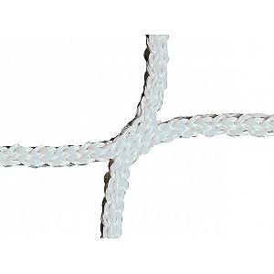 The knotless football goal net is a single-framed net with a mesh size of 12 cm and a goal depth of 80/150 cm. It is manufactured according to the DIN EN 748 standard and can be stretched in every football goal with a size of 7.5 x 2.5 m. The net is made of polypropylene. Its knotless finish makes the football goal net particularly robust and abrasion-resistant. The net is supplied with matching tensioning ropes for easier fastening.