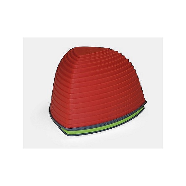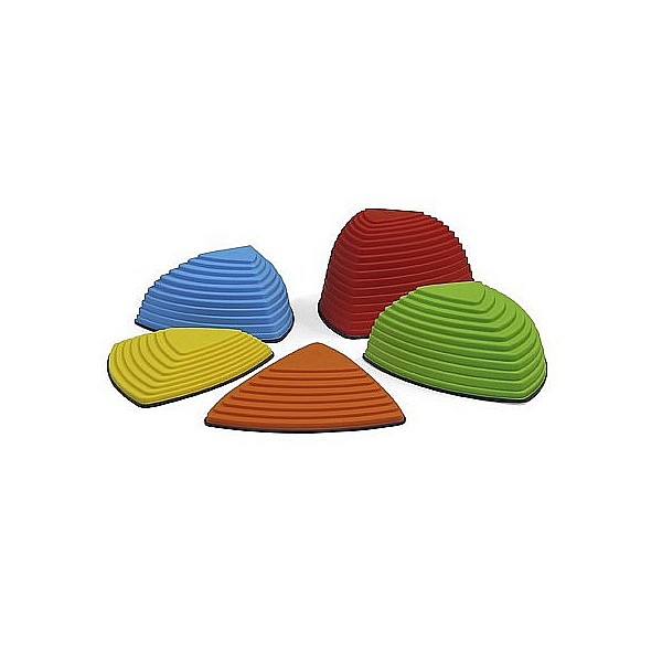 Set of 5 different heights, colored hilltops made of durable plastic, prevents non-slip rubber edge, the slipping and protects the floor from scratches. The domes are designed so that they can not tip over.