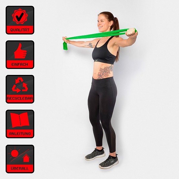 Are you looking for something to strengthen your muscles and tone your body? Then the Physio-Tape is the ideal training aid for you. Thanks to its practical size, you can take the Physio-Tape with you everywhere. It is especially suitable for a joint-friendly and effective training of the arms, shoulders and legs. In addition, specific exercises can be used to strengthen the trunk as well as hip muscles. Physio-Tape is the ideal multifunctional protein-reduced latex tape for sports, fitness, therapy, dance and gymnastics. With the four different strengths, no matter whether beginner or professional finds the right tape.