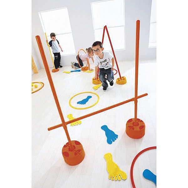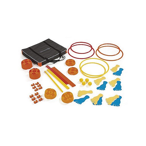 3 tire Ø 50 cm 3 of tire 2 Ø 60 cm small cone 2 large cone 2 oblique cones 6 double clamps for bars 6 double terminals for tire 4 bars per 30 cm 8 cm bars 70 each 12 feet. Incl. carrying case (W x L x H) 65 x 75 x 11 cm. The New Scogym series is designed to, preferably to promote among children in the group's sense of balance and coordination, and to strengthen the muscles. The modular design allows for a variety of applications and course. The monoblock design of the cone is extremely robust and offers through the round shape and non-slip base plate maximum safety. The hat can be easily stowed by stacking and are absolutely hygienic, since they can be easily cleaned with soapy water. The New Scogym series is geeign for indoors and outdoors