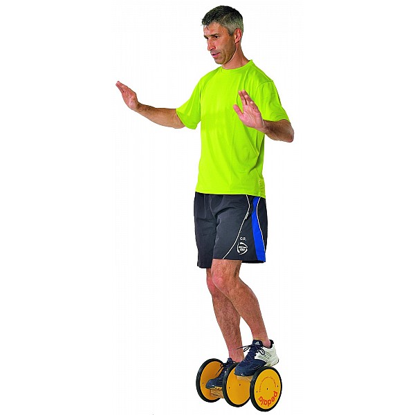 The rotating foot plates, wooden, 6 x 14 cm increase the difficulty and train the balance, responsiveness and coordination skills in particular. Therefore, in recreational and competitive sports, the individual Pedalo® is hereby established as an important training tool.