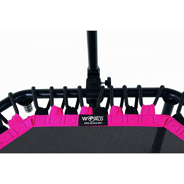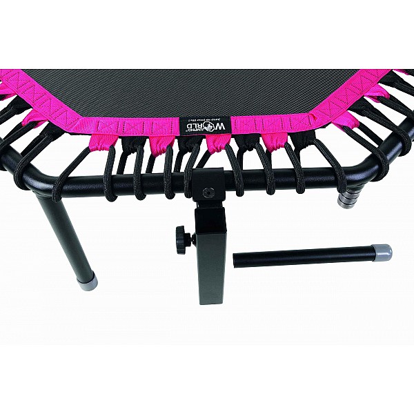 Trampoline Ø 102 cm. Enables high running frequency, and fast dynamic movements. Recommended for endurance training and aerobics. Particularly permanent suspension in the frame. Special plastic eyelets prevent the hard spring steel destroyed the frame. Optimal jumping at 50 - kg 125th Low ground distance of about 26 cm.