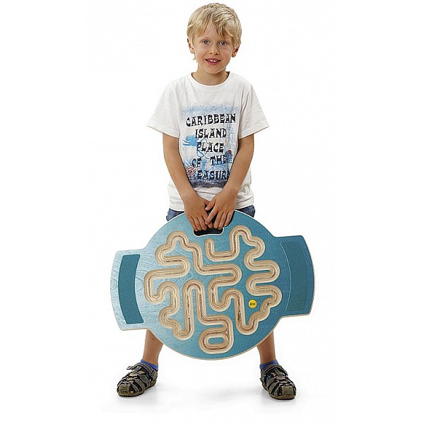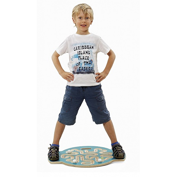 A Balancierscheibe to stand on it and run with the aim of 1-3 balls through the Wndungen, of course without shortening. The start and finish is on the carrying handle, which is also the ball holder. This Balancierspiel serves to promote skill.