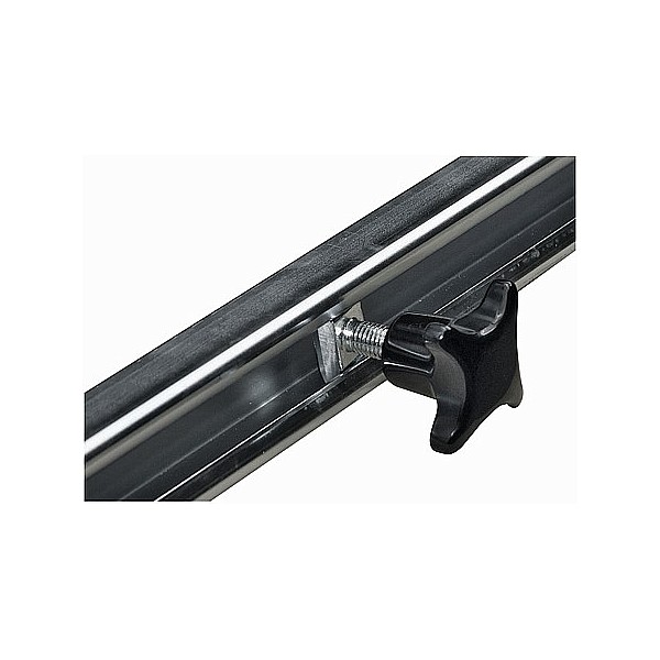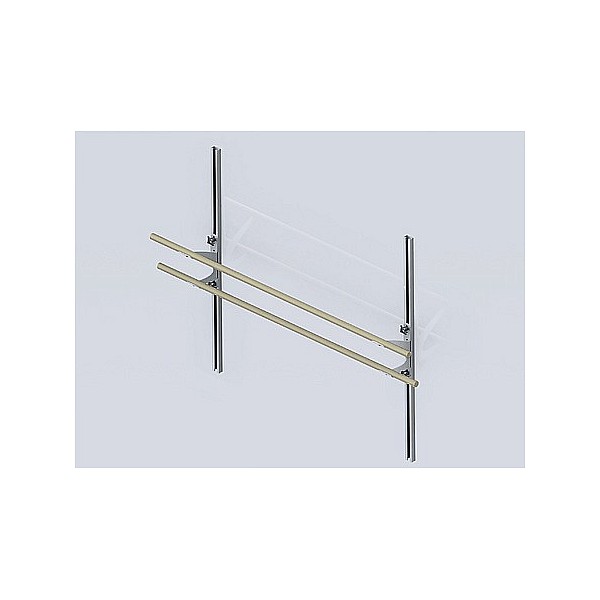 Rail for continuous adjustment of Balettstangen Wall consoles. Length 149 cm. Delivered with two sliding blocks, 2 star handle nuts and plugs and screws for wall mounting.