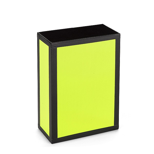Box made of poplar plywood, neon colors on 4 sides stuck. End faces are glued for better adhesion with felt. Dimensions: 18 x 12 x 6 cm, 270 g.