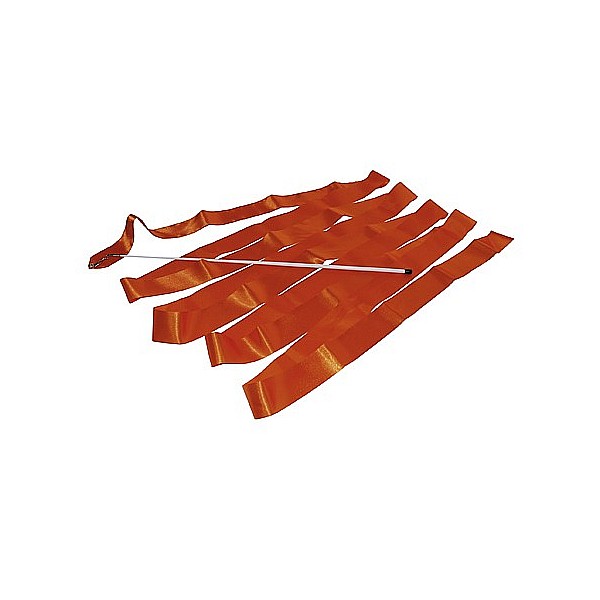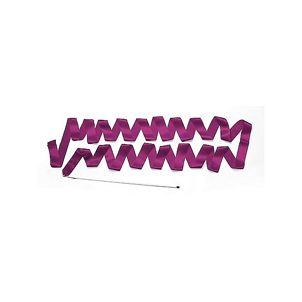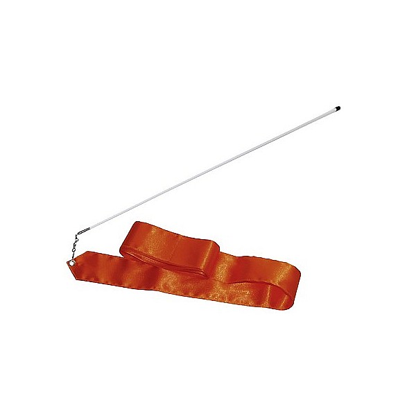 6 meter competition exercise band of satin, 5 cm wide, with fiberglass floor, swivel and eye. FIG certified.