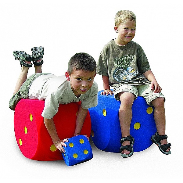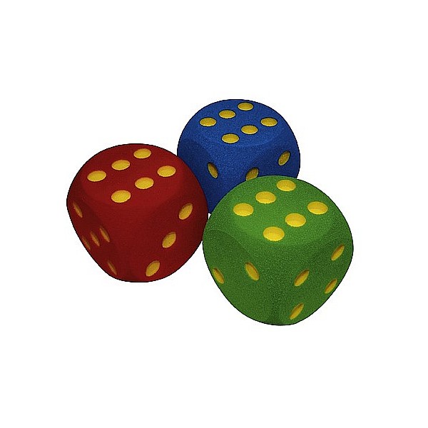 Variable usable dice (40 x 40 x 40 cm) for fun indoors or outdoors. Color according to stock (red, blue, green). Numbers 1-6, colored milled.