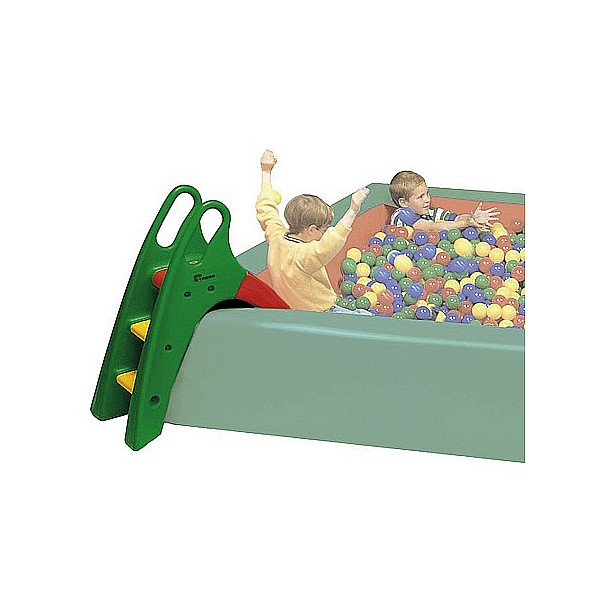 Great fun and playfulness - the stairs slide of foam. The ideal complement to the Rainbow ball pool. The slide is all over covered with tarpaulin material, very durable and washable. Phthalate - without dangerous softeners! Dimensions: 130 x 60 x 50 cm.