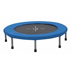 The portable version of the indoor trampoline. The space saver can be folded up small and stowed in a nylon bag. 44 springs, frame padding blue, jumping mat black. 8 feet, load 100 kg, weight 9.5 kg. Delivery in a box for self-assembly.