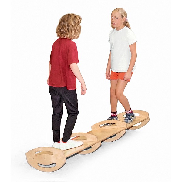 The basis of this versatile ERZI set is formed by two Rocky Rocker seesaws, which are made without nails and screws and already offer a lot of possibilities. The rockers have two different radii, which means that the degree of difficulty can be changed by simply turning the rockers upside down. The seesaws can be used as stools, sitting, kneeling or standing seesaws. When sitting or kneeling, the round rods serve to hold the children in place. The balancing boards that are part of the set can also be hooked into these round rods and so the two seesaws and one balancing board become a great balancing board. If you hang a balancing board in the middle of the seesaw, a swing for two children is created. With the 4 balancing boards, you can always create new paths with different requirements. The set also includes a wall bracket in which the balancing boards can be easily hung on the wall after use to save space. Made in Germany. The ERZI ROCKY balancing course consists of: 2 seesaws "Rocky Rocker", (LxWxH): 42 x 29 x 17 cm 1 "Senses" balancing board, (LxWxH): 186 x 22 x 8.5 cm 1 balancing board "Field stone", (LxWxH): 186 x 22 x 8.5 cm 1 "Ten" balancing board, (LxWxH): 186 x 22 x 8.5 cm 1 "Forest floor" balancing board, (LxWxH): 186 x 22 x 8.5 cm 1 wall bracket, (LxWxH): 50.6 x 12 x 6.7 cm Material: birch plywood, beech, clear lacquered Delivery carriage forward ex works!