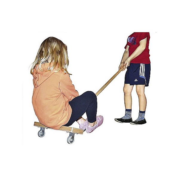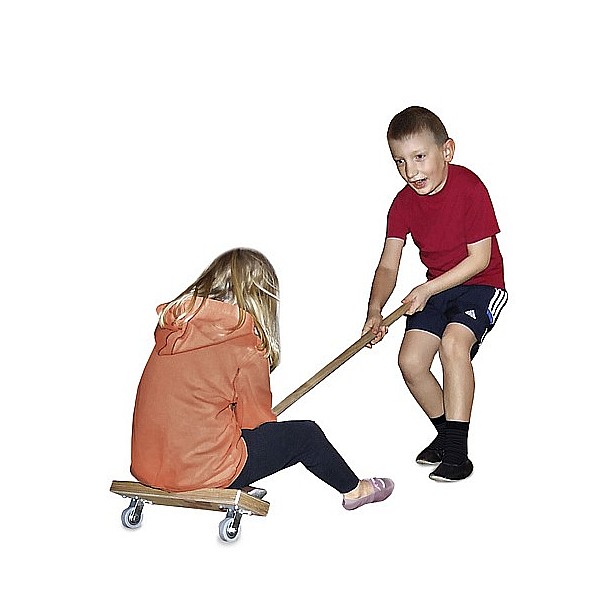 Simple, creative play and sports equipment with a high fun factor. Wood construction with 2 support rollers for slalom, speed games, race etc. Max. Power 45 kg.