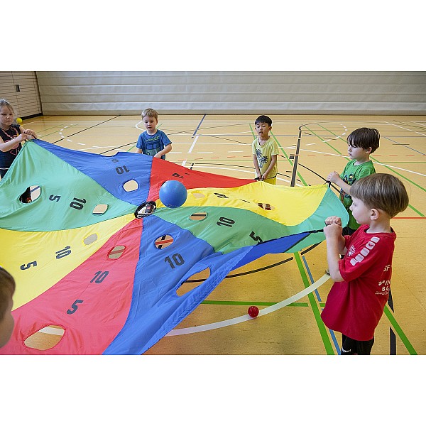 With practice and skill the ball rolls into the specific target hole, the eye-hand coordination promotes. 12 handles, sewn target holes and printed figures offer additional Spielmöglichkeit.Material: polyester fabric. Dimensions target holes: Ø 12 and Ø 19cm.