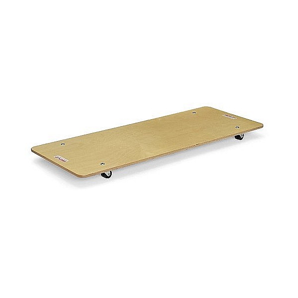 By several people simultaneously usable. Plywood board with four smooth-tread rubber casters.