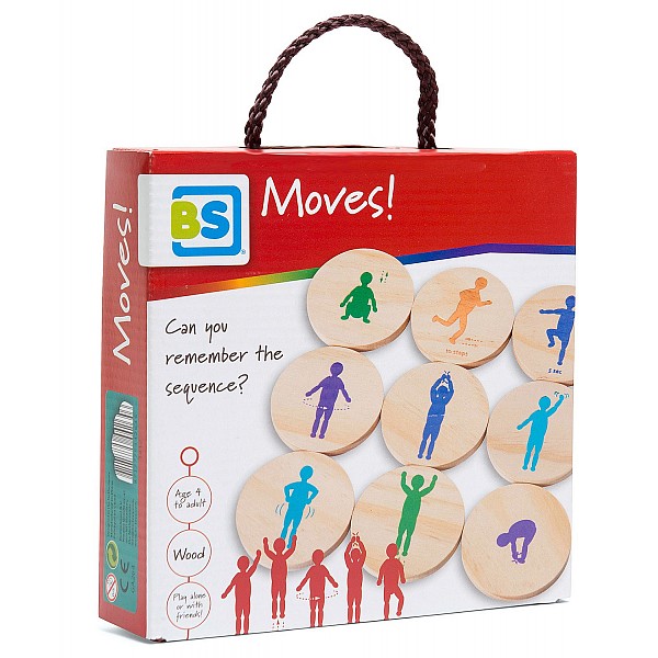 The movement and memory game combines the classic memory game with a lot of movement and fun. The 18 wooden chips lying face down are uncovered by the players one after the other. Each chip shows a movement that the player must perform. Then this chip is covered by the chip of the next player and this player must now perform the first and the second movement. With each player the series of movements becomes longer and to remember all the movements in the correct order requires a high degree of concentration. Whoever forgets a movement is eliminated. The winner is the player who can remember the most movements in the correct order. This game trains memory, movement and coordination in a playful way.