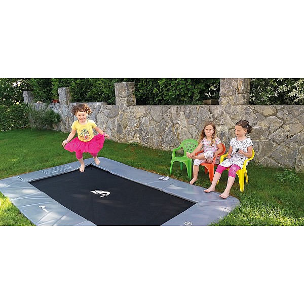 Playground trampoline suitable for the unattended and freely accessible playground area with high vandalism safety. A wonderful addition to every playground that unobtrusively blends with walking surface. Equipped with an innovative jumping mat it allows efficient ventilation, while the completely enclosed spring system and premium quality materials guarantee maximal durability and safety for use in public areas.