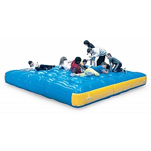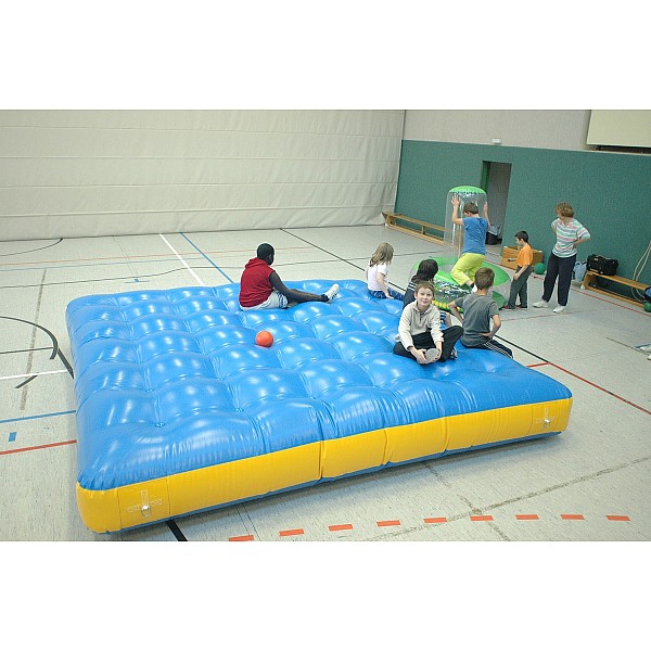 The large air cushion Mini-Jumpy can be used in many ways: As a therapy pillow for training body sensitivity and coordination exercises or as play and sports equipment in indoor and outdoor areas. The Mini-Jumpy is inflated with a hand blower and does not require the operation of a continuous blower thanks to suitable valves. The cover made of plastic-coated fabric is extremely stable and robust. This means that the cushion can also be used for outdoor activities. The matching ground anchors to secure it for outdoor use are included in the delivery. An underlay prevents the cushion from slipping away even during intensive play and use. If the Mini-Jumpy air cushion shows signs of damage after prolonged use, it can be patched up with the enclosed repair kit. Made in Germany.
