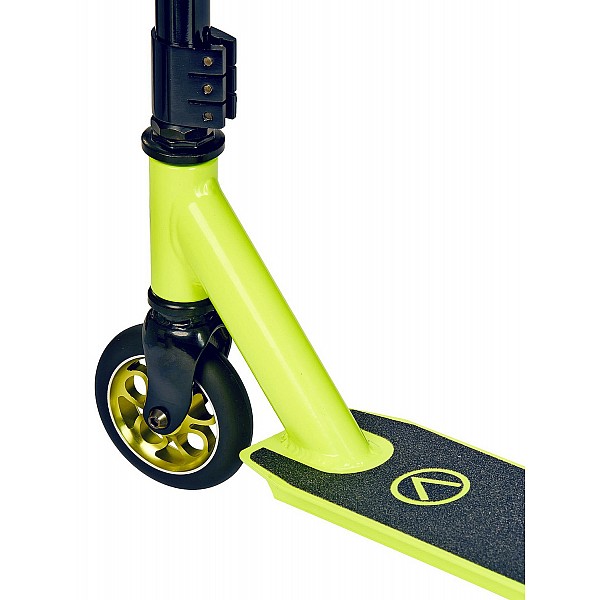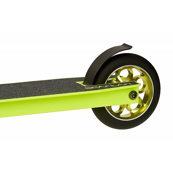 High unicycle with chain drive and chromed steel frame. Height 150 cm. Blue anodized aluminum rim 36 holes. Black 20 "x 1.95 inch tires. Encapsulated inner bearing, blue anodized disc hub from aluminum and black plastic pedals. Minimum step length 57 cm, weight 6.65 kg.