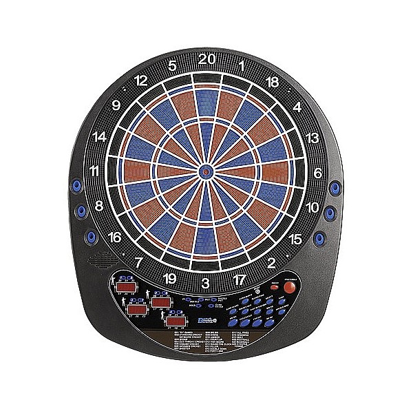 Future electronic dart board, for up to 8 players. Competition target with tournament size? and professional look. 22 games, 102 variations, voice and sound effects, four LED displays, game against the computer, incl. Adapter and 12 darts.