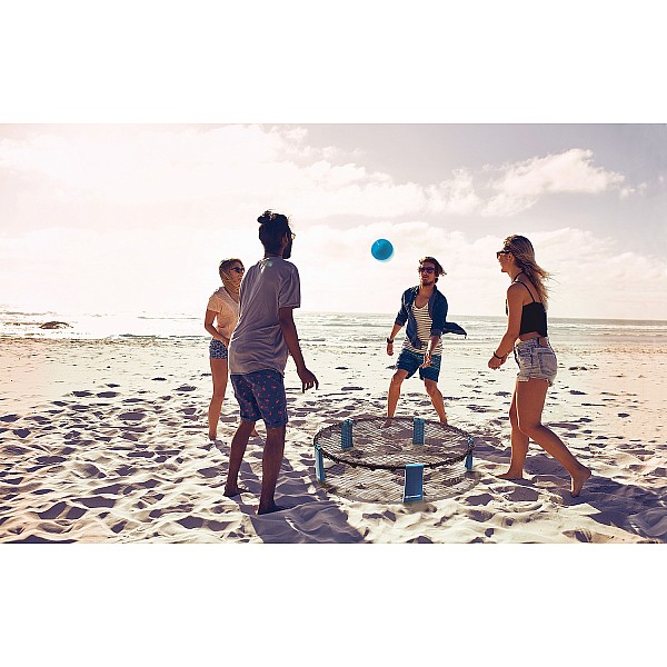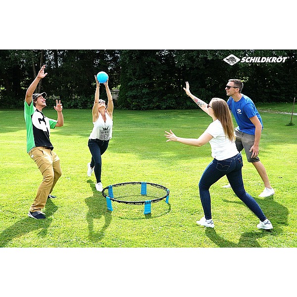 Roundnet is a lively, action-packed and even competitive 2-against-2 sports game for indoors and outdoors. The versatile Roundnet game can be played on a university campus, field trip, lawn, yard, garden, beach or gym. The rules are similar to those of volleyball. The playing field is not limited to one side and is therefore 360 degrees for both teams. The game can be set up in seconds without tools or much effort and can be taken anywhere due to its light weight. The fast-paced game inspires everyone and you will quickly find interested teammates.