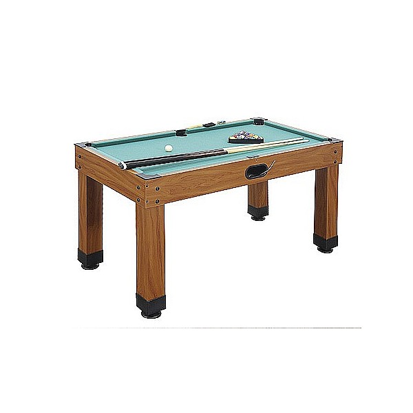 Game table, each playing slightly remodeled with 9 game variations. A high quality foosball table with 16 mm chrome plated solid steel rods game or telescopic rods game is quickly becoming the billiard-speed hockey table or ping pong table. The ideal, robust, multi-game table for indoor use, perfect for youth centers, schools and clubhouses. 9 popular games can be played: table football, pool, table tennis, speed hockey, shuffleboard, bowling, chess, checkers and Backgammon.Aufstellmaße: 145 x 130 x 90 cm. Handle height 84 cm. (Width of 130 cm with built-in game rods in the table football). Foosball table-top: laminate Spie field 117 x 90 x 68 cm in green with white lines and patch plastic corners. Stable 90 x 90 mm square MDF table leg construction incl. Floor leveling with height-adjustable foot plate. The package includes: 2 football balls, 2 cues, 1 set of billiard balls, 1 triangle, chalk and Queue tablecloth brush and the complete accessories