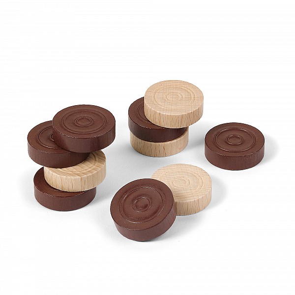 Wooden maple, brown and natural, satin polished 25 mm diameter, of 12 St. in a polybag.