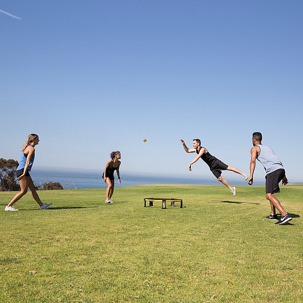 The feet of the Spikeball "Pro" are non-slip rubberized and more stable than the classic Spikeball, which gives the rack a secure footing on almost any surface and a longer life. The spikeball reaction game "Pro" comes with two specially printed balls, which ensure optimal ball control and are easier to turn on. With the included ball pump and measuring aid, you can easily inflate the balls to the recommended size.
