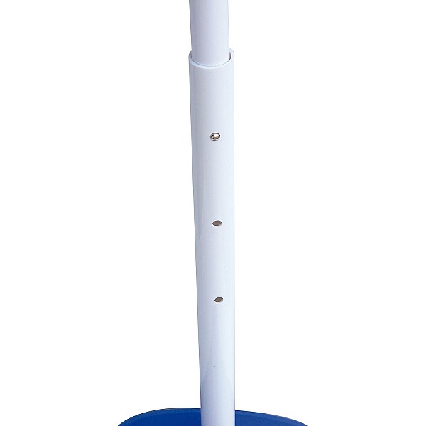 Lightweight plastic target stand for throwing discs, suitable for throwing discs like frisbees etc. Dimensions (W x D x H): 43 x 26 x 135 cm. Three possible heights adjustable between 88 and 135 cm. Plastic stand can be filled with sand or water for stabilization. Diameter of the opening 2.70 m. Two throwing discs are included.