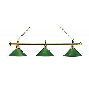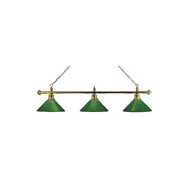Special billiard light with excellent beam. The green brass screens with a diameter of 35 cm are very robust and easy to maintain. Tested and approved by the regulations (Rohs / CE). Delivered with suspension and corresponding ceiling rosettes. Length 148 cm, max. 3 x 75 watts. Delivery without bulbs.