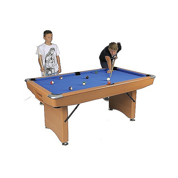 Stylish and practical pool table. The surface in beech and the blue cloth quality are easy to maintain and insensitive