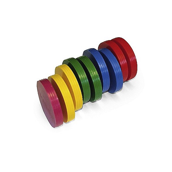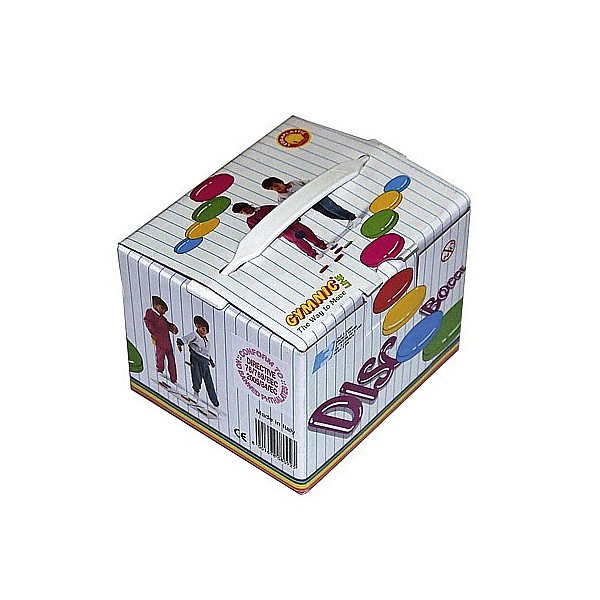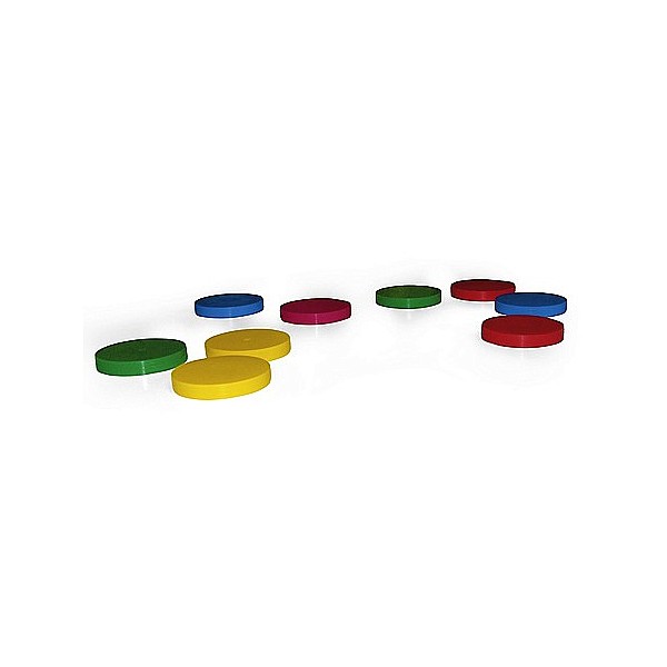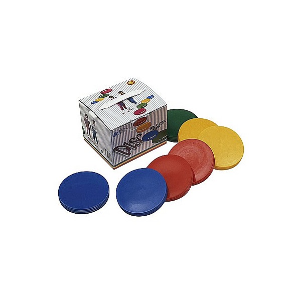 Consisting of: 8 slices (2 each in red, blue, green, yellow), diameter 9 cm and one setting disc. It is played according to bocce rules. You can use the discs even in psychomotor exercises.
