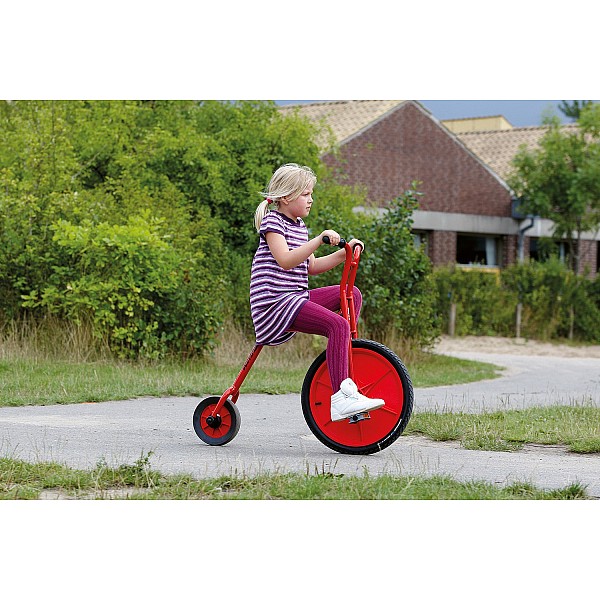 For children this penny-farthing is just a lot of fun and at the same time they playfully train balance and coordination. Durable, puncture-proof front tire made of PU and stable rear wheel. The long seat makes the penny-farthing suitable for many ages and heights. Winther is a Danish family company and produces since 1932 high quality vehicles that have become the standard in every day care center.