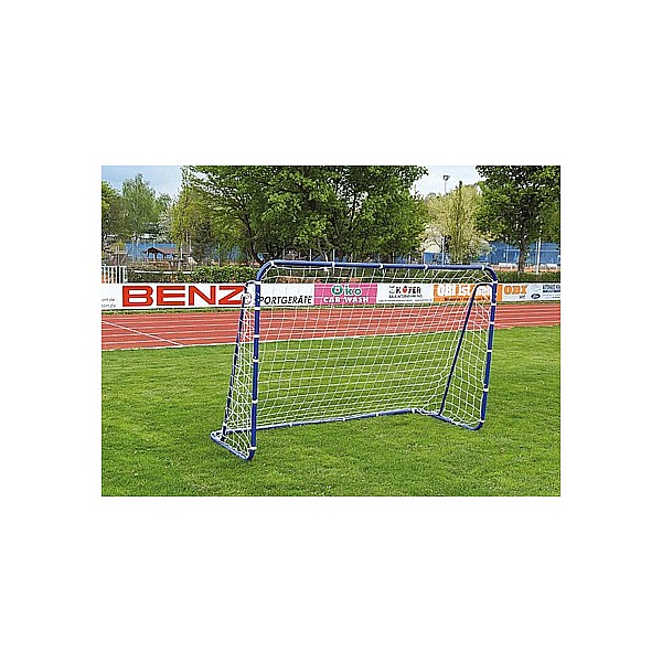 240 x 160 x 100 cm (L x H x D), strong and stable construction, pipe diameter 3.8 cm. Net is attached with Velcro fasteners on the matable linkage. Door must be secured with the supplied pegs from falling over. With assembly instructions.