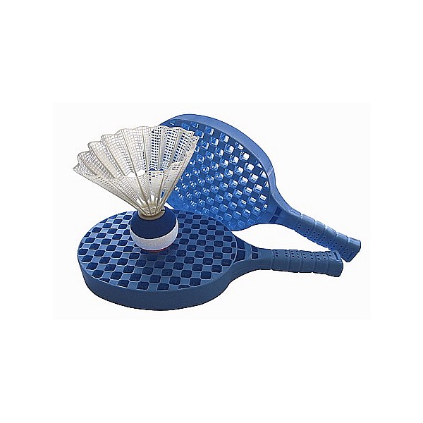 Game set consisting of 2 sturdy plastic rackets and shuttle ball. This oversized badminton has best even in windy flight characteristics.