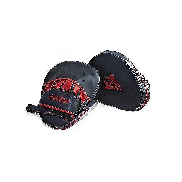 Boxpratsche Double Coaching Mitt Contender, artificial leather with extra-thick foam core. Ideal for full-contact training. Length 27cm, cushion thickness 4.5 cm, black-red.