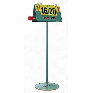 Shell in roof shape at column with Tellerfußständer with rubber edge, foldable plastic-number boards on both sides numbered from 0-30, block display 0-5, further comprising means for service indicator.