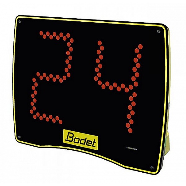 One pair 14/24 sec. BT6002C display panel, Bodet, black body, (B x H x T) 41 x 30 x 11 cm, 2.3 kg, scale height 20 cm, yellow and red LED digits, 2 digits of display, display of 14/24 sec., m Visibility 120, cable controlled.