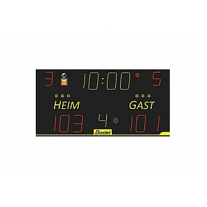 For 14 different sports (eg basketball, volleyball, handball). 5 different languages. Character height 9 cm, 35 m Visibility, dimensions (W x H x D): 733 x 368 x 115 mm. Weight 6 kg.
