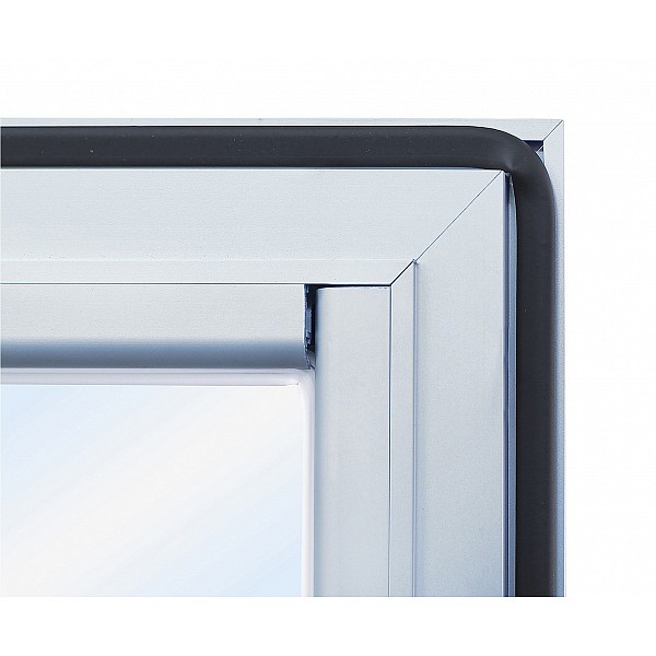 Aluminum showcase with sliding doors for indoor use. The sliding doors of 4 mm hard glass move on brass rolls along the slide rails. Accommodates 16 A4 sheets. The outer dimension is 160 x 80 x 3 cm.