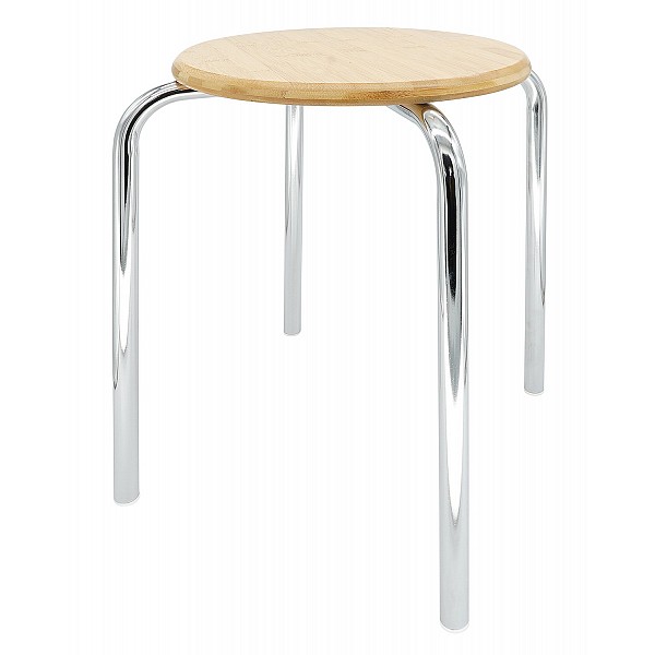 Easy-care and space-saving stacking chair with chrome-plated frame and ergonomically shaped seat shell made of beech plywood, natural finish. Can be coupled with row connectors. Chair legs are equipped with floor protectors. Made in Germany. Specifications: Seat height 460 mm Seat width 540 mm Seat depth 460 mm Weight 6 kg Maximum load 125 kg Stackable up to 10 chairs on top of each other Range of application: School Club Events