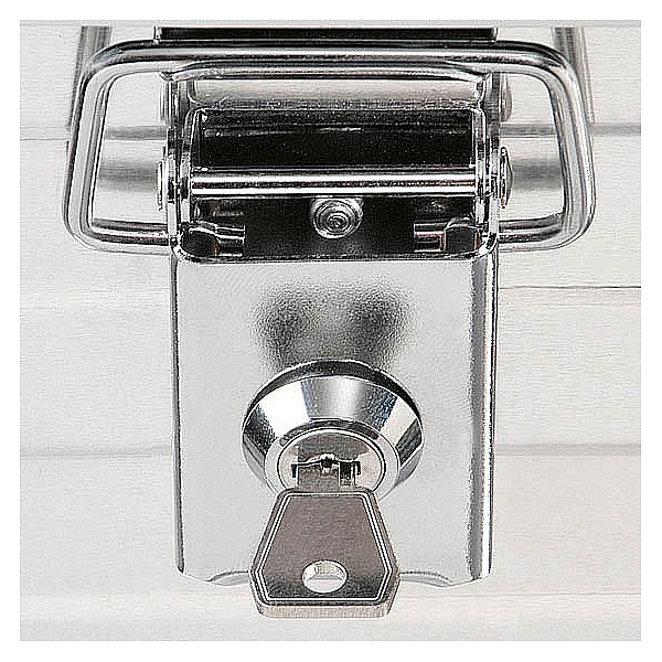 With the cylinder lock set, you can retroactively secure the aluminium box. The retrofit kit includes a pair of built-in locks and 2 keyed alike. The front of the aluminium boxes have been fitted with lever-action locks. These locks have been provided with suitable recesses for the built-in locks.