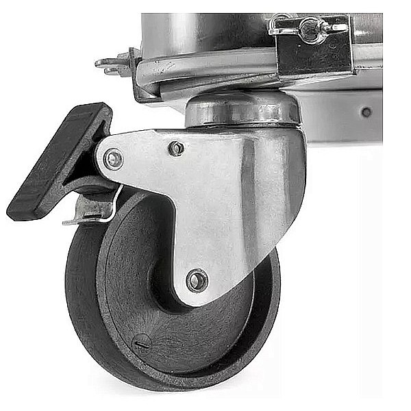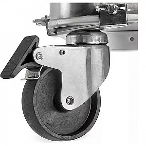 Transport rollers for retrofitting for easy transport of the aluminum boxes. When using several stackable boxes, only the lowest transport rollers are needed to transport the aluminum boxes at the same time. The assembly of the robust transport rollers made of polyurethane is very simple and to prevent the box from rolling away, two rollers are equipped with brakes.