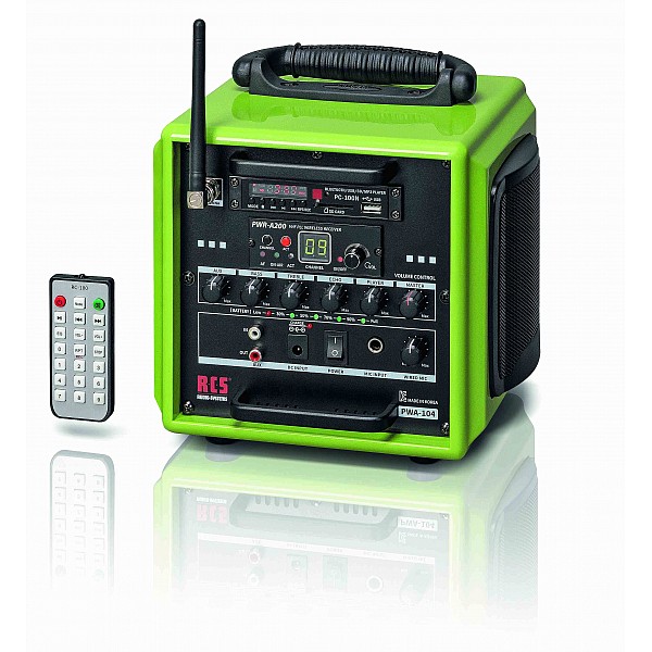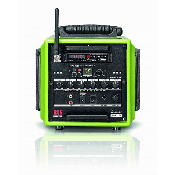 Mobile speaker system, BZ-808-TH, consists of: Speaker MA-808 (823-832 MHz), receiver module MRM 72B (823-832 MHz), microphone ACT-32H-80 (823-832 MHz), pocket transmitter ACT 32T (823-832 MHz), headset microphone MU55-HNS 3M, optional CD players (CDM-2), sleeve (SC-50), stand (MS-70)