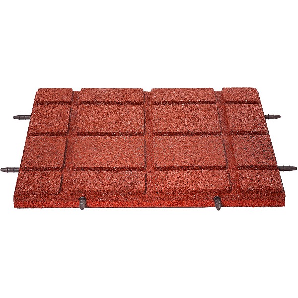 The use of fall protection rubber panels and their professional installation on playgrounds reduces the possibility of injury to children to a minimum. Due to its drainage on the underside, the F fall protection panel provides even water drainage and good fall protection. A single plate has a size of 50 x 50 cm. The plates are inserted into each other by means of plug-in connections on each side. When selecting the thickness of the rubber slabs, the fall height of the playground equipment must be taken into account. The water-permeable and non-slip rubber fall protection slabs are made of high-quality granulate and binder in an environmentally friendly way. The slabs should be laid on solid ground such as gravel, crushed stone, chippings, concrete and earth