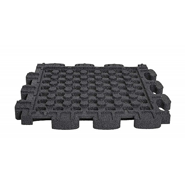 The Puzzle Mat 3D fall protection panels with predefined joint spacing and drainage do not require any plug-in connections. A plane and homogeneous floor surface is created with matching edges and corner tiles.